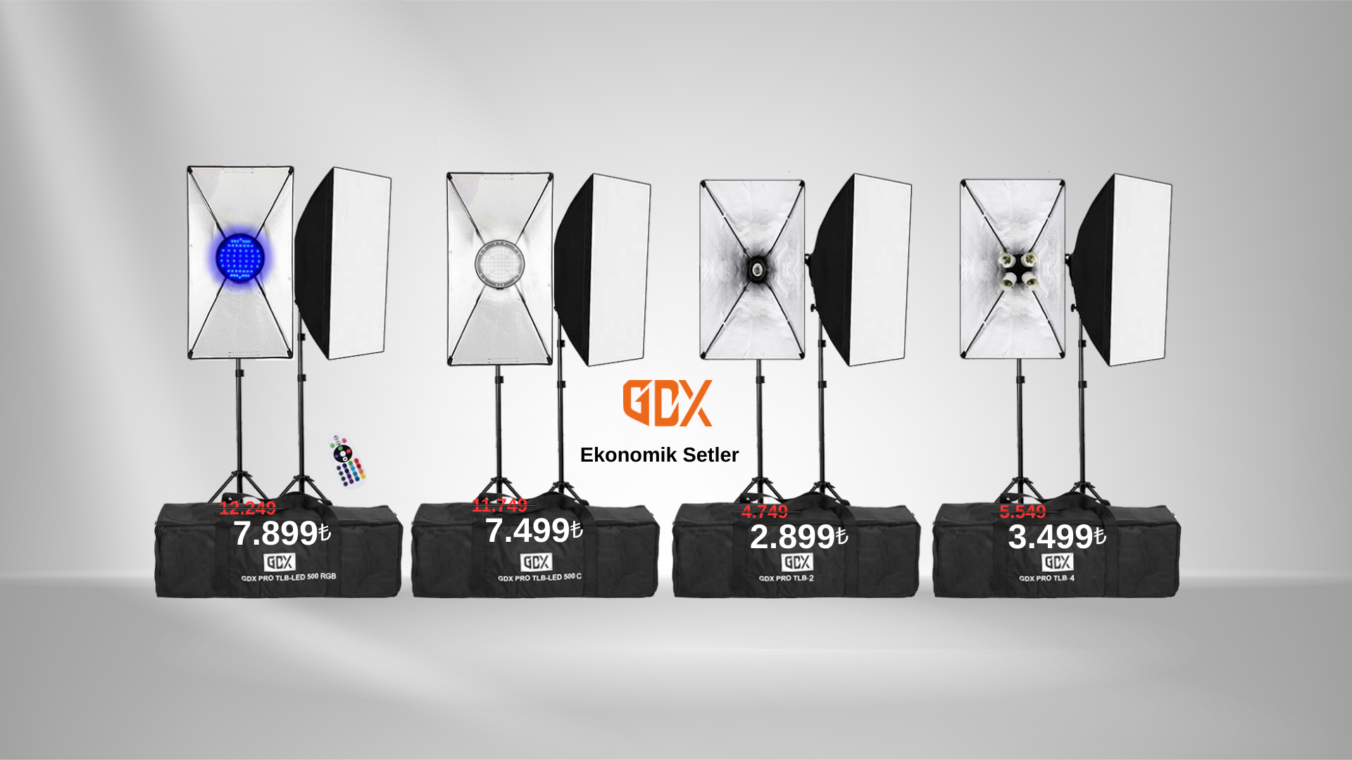 Stüdyo ve dış çekimlerde GDX kalitesiyle her zaman bir adım önde olun. Paraflaş sistemleri, video LED ışıklar, sürekli ışık setleri, softbox, reflektör, ürün çekim çadırı, çekim masası, tripod, ışık ayağı ve daha birçok profesyonel ekipmana en uygun fiyat avantajıyla sahip olun.
