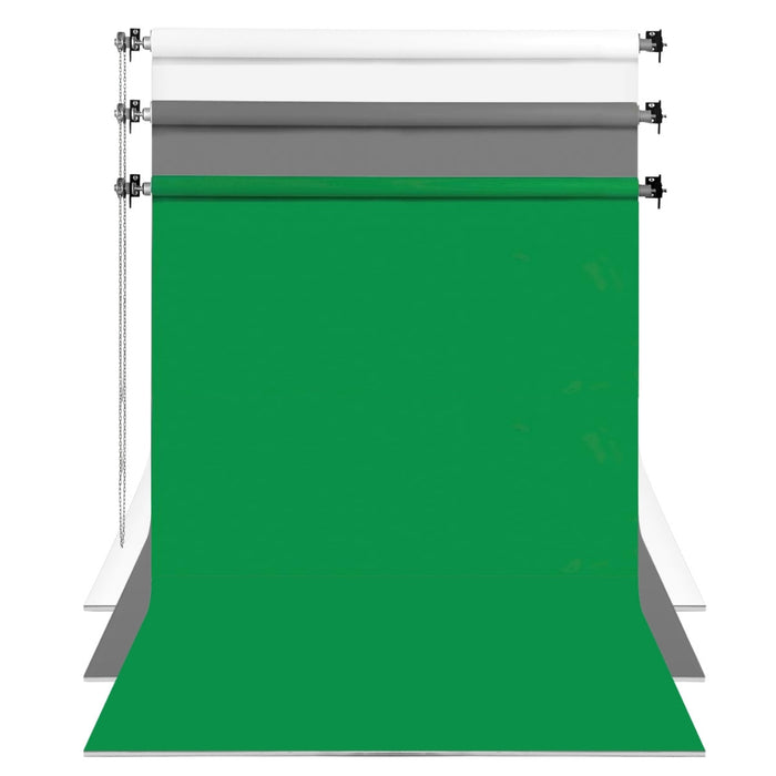 GDX Sabit Kumaş Beyaz – Yeşil – Gri 3’lü Fon Perde Seti 2.70x5.80 Metre (Duvar & Tavan Montajlı)
