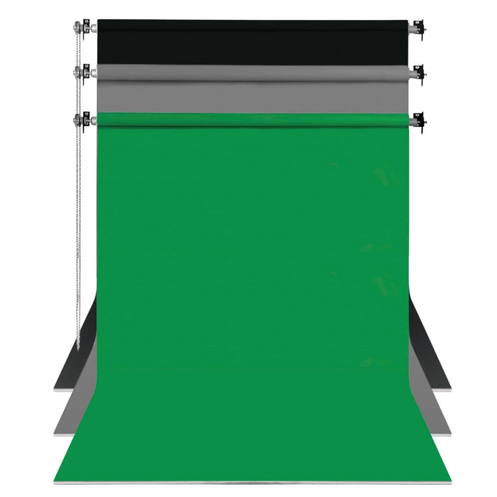 GDX Sabit Kumaş Siyah – Yeşil – Gri 3’lü Fon Perde Seti 2.70x5.80 Metre (Duvar & Tavan Uyumlu)